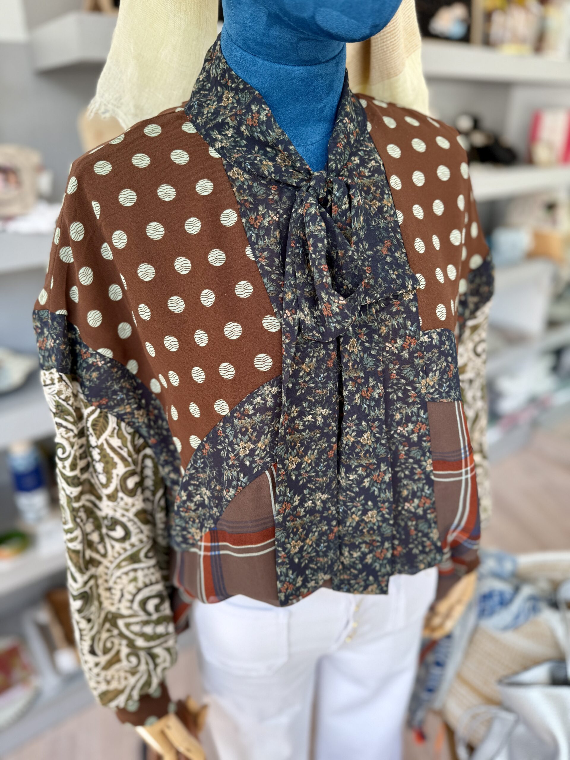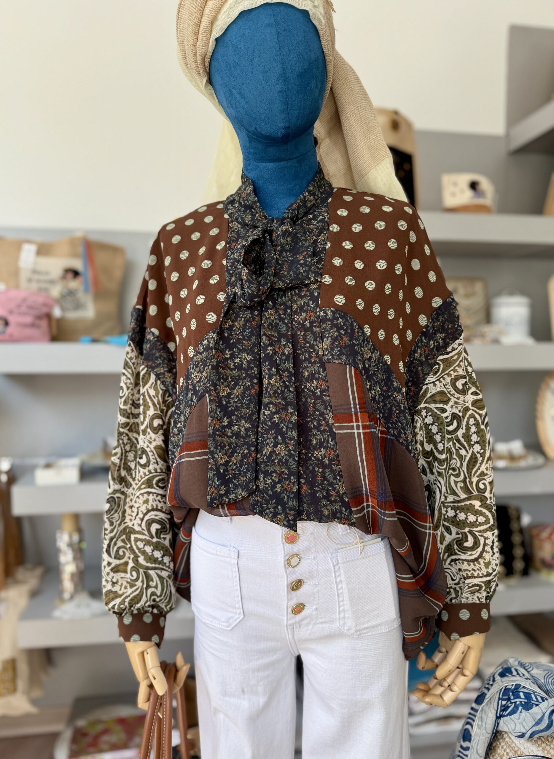 Blusa de lazo casual y holgada con forro en su interior, cuello pico sin botones