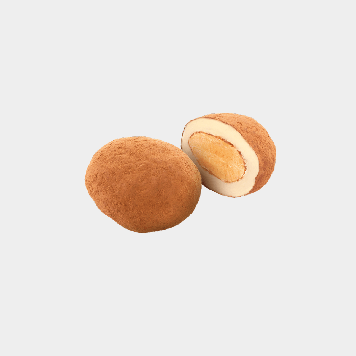 Una irresistible combinación de texturas y sabores en el paladar. Almendra variedad Marcona, tostada y caramelizada, recubierta de chocolate blanco y espolvoreada en cacao puro.